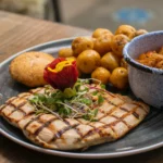 Salmón a la parrilla y ensalada Matriarca | Grilled salmon and Matriarca salad